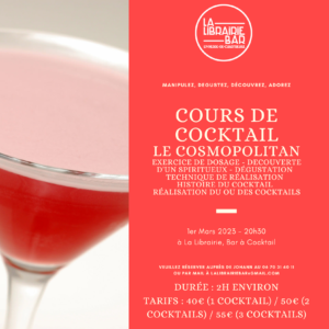 - Réalisation d’un 2ème et d’un 3ème cocktail : 15€